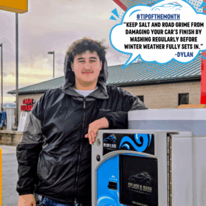 This month’s tip comes from Dylan, who reminds drivers that salt, slush, and winter road grime can cause long-term damage to your vehicle’s finish if left untreated. Regular washes, especially before the winter weather fully sets in, help remove harmful buildup and keep your car protected.