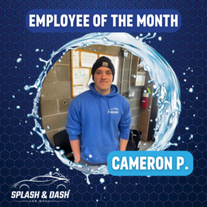 Congratulations to Cameron, Splash & Dash’s employee of the month. We are proud to recognize the hard work he brings to the team every day. He enjoys talking with customers and being part of the action while washing cars, making each visit a great experience for everyone who comes through.